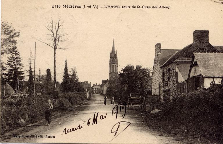 Mézières (I-et-V). L'arrivée route de Saint-Ouen-des-AlleuxImmatriculation