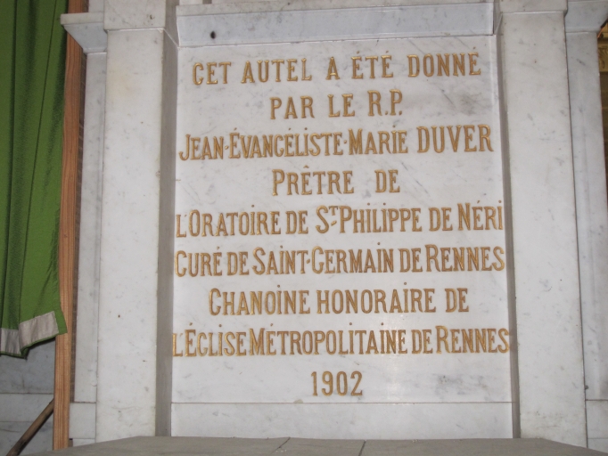 Inscription située à l'arrière de l'autelImmatriculation