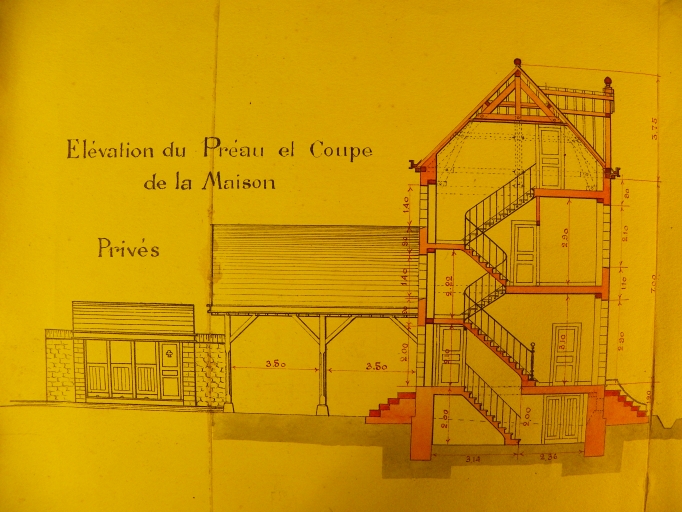 Elévation du préau et coupe de la maison, 1900Immatriculation