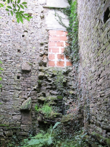 Angle extérieur des deux bâtiments : ancien manoir et nouveau, traces d'arachement peut-être de latrinesImmatriculation