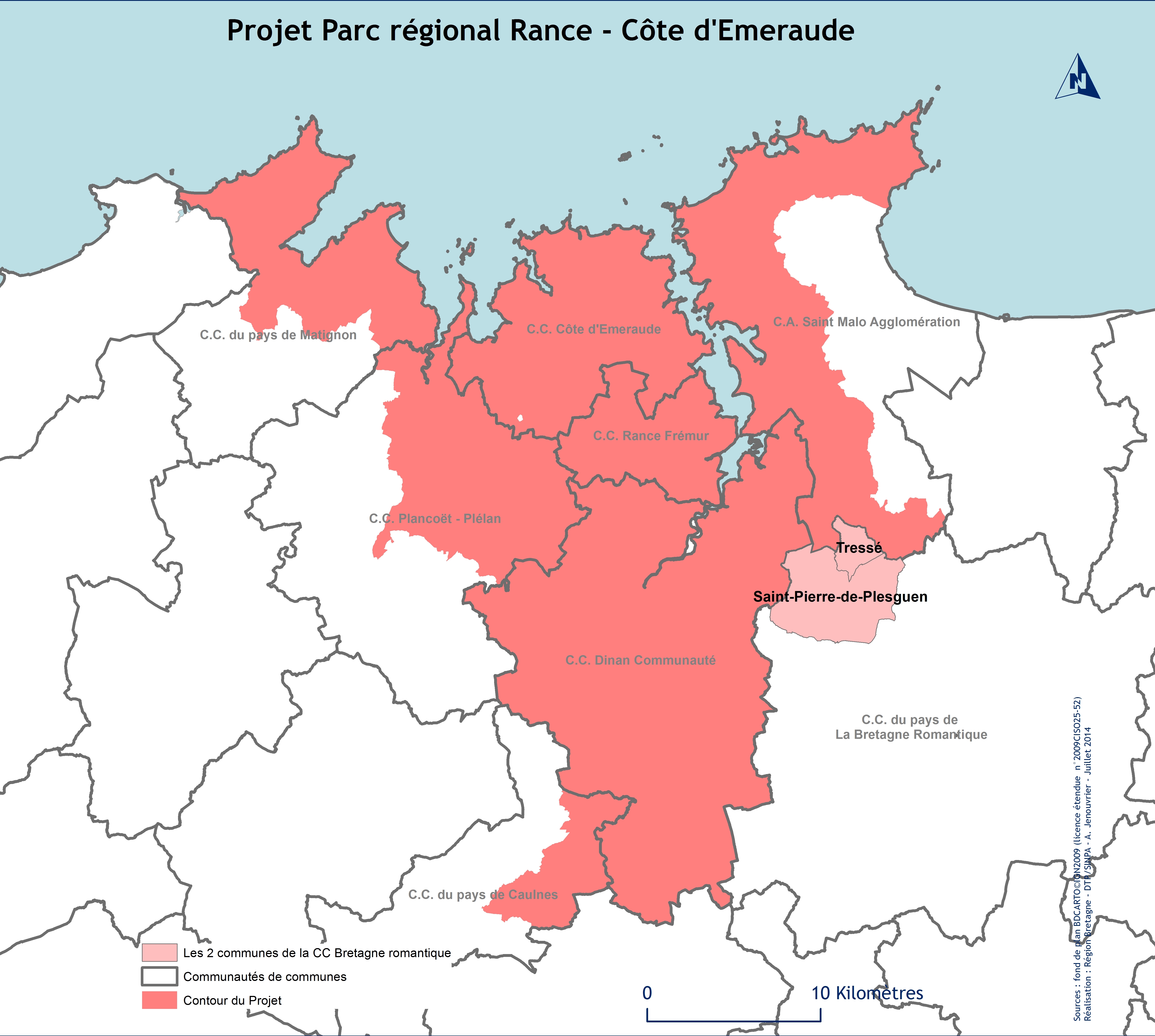 Carte de situation des 2 communes (en rose) de la CC du Pays de la Bretagne Romantique dans le périmètre d'étudeImmatriculation