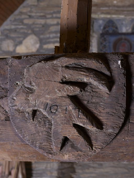 Chapelle, sur l'entrait : les armoiries de la famille Couldebouc (état en 2010)Immatriculation