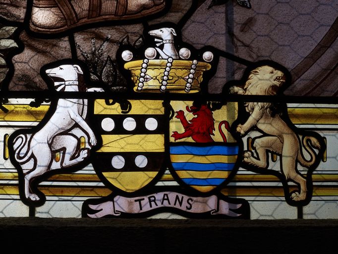 Verrière de la baie 6 : armoiries des donateurs (état en 2011)Immatriculation