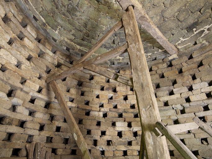 Manoir, colombier : le poteau central pivotant, autrefois muni d'une échelle, permettait d'atteindre les boulins (état en 2011)Immatriculation