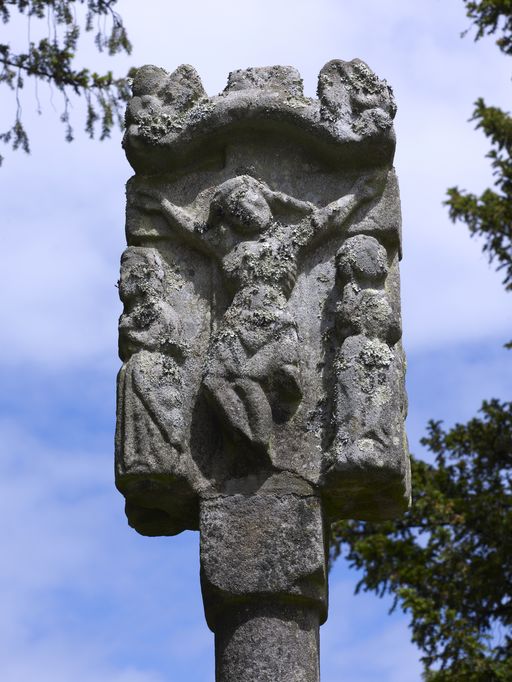 Croix de l'enclos : face portant le Calvaire (état en 2011)Immatriculation