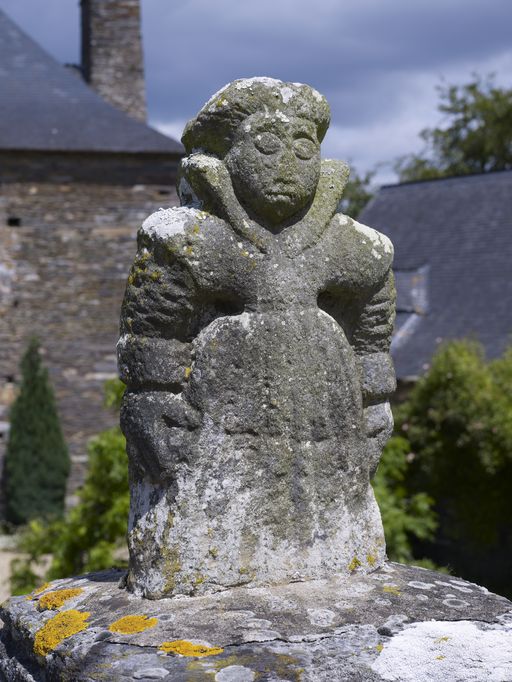 Manoir, à droite du portail : femme en costume Louis XIII (état en 2011)Immatriculation