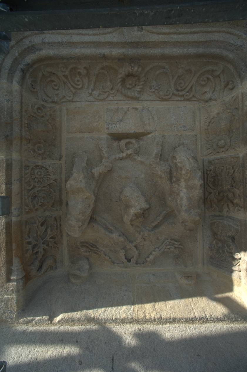 Niche au sommet du pignon du porche nord : armoiries bûchéesImmatriculation