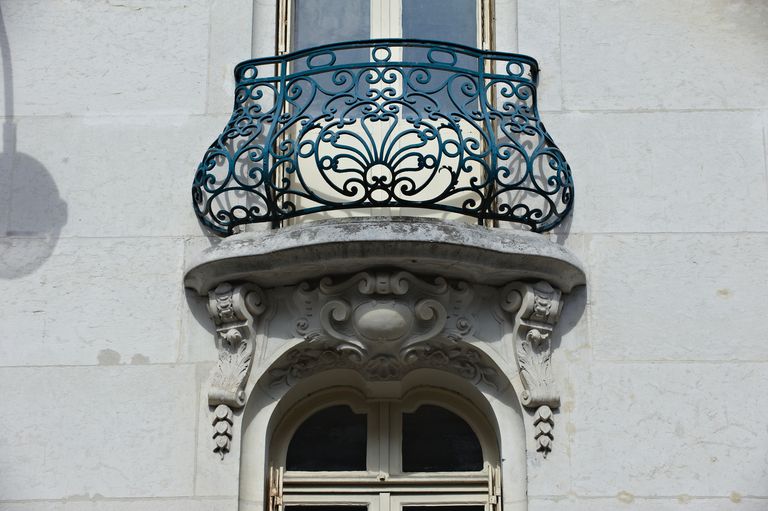 Clef d'arc et écoinçons traités en consoles supportant le balconImmatriculation