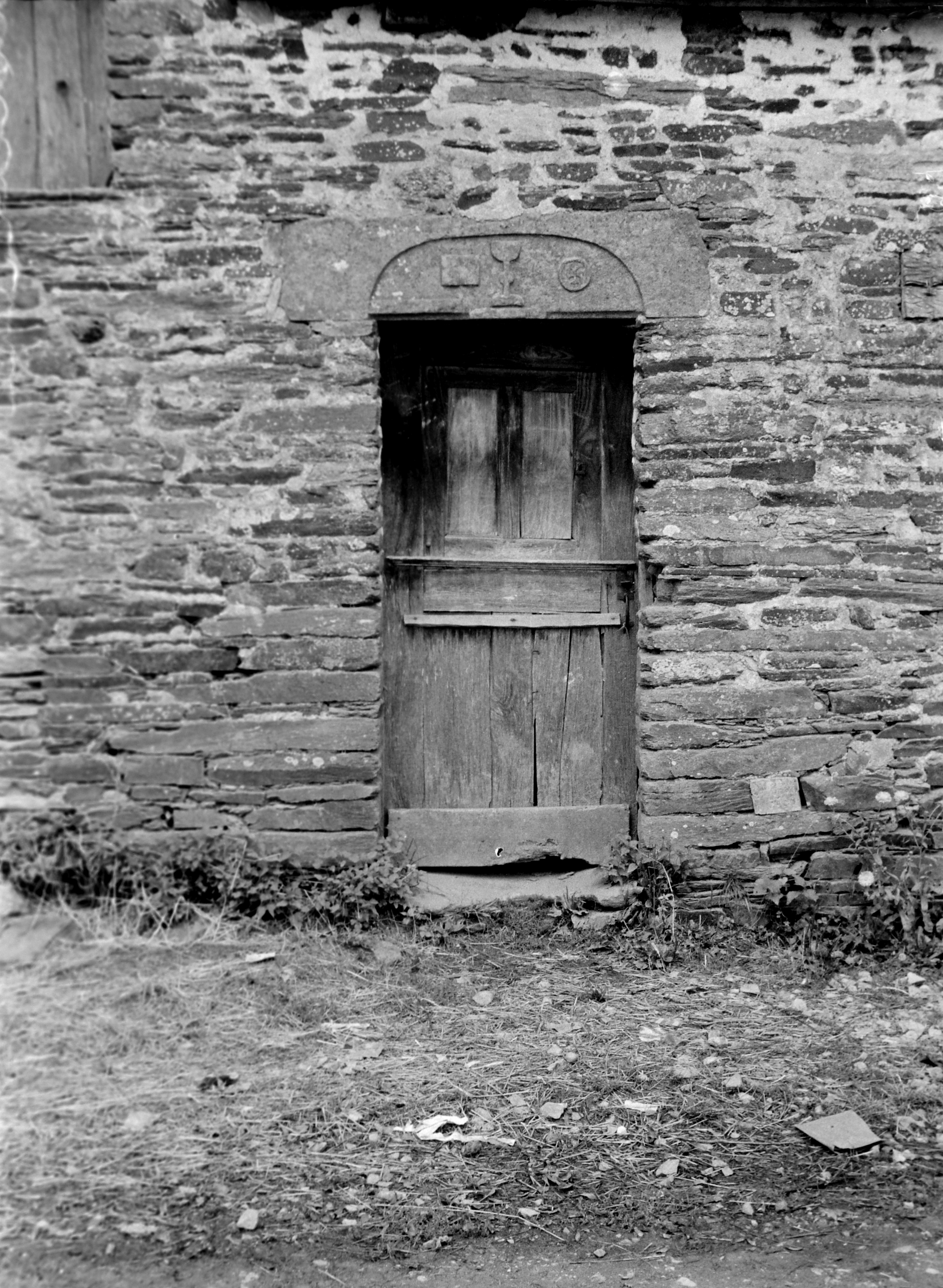 Maison de prêtre : la porte dont le linteau porte un calice entouré d'un livre et d'une hostie (état en 1969)Immatriculation