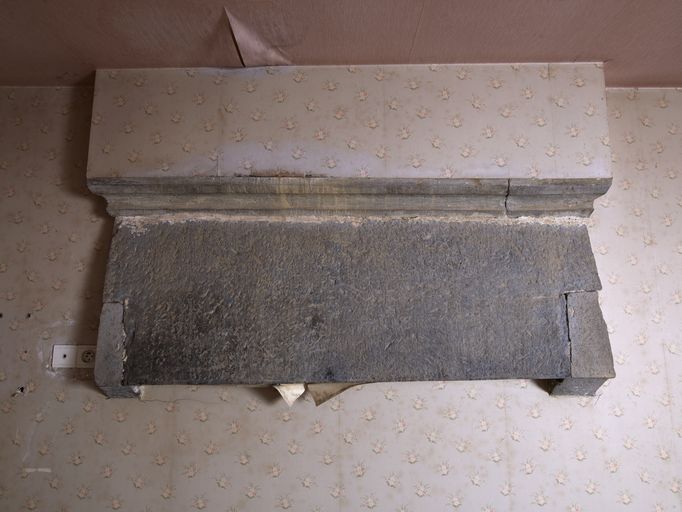 Manoir, logis nord, 1er étage, pièce nord : vestige de la cheminée contre le mur nord (état en 2011)Immatriculation