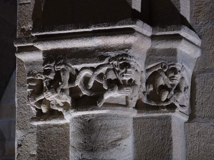 Chapiteau de la nef, masque crachant des rinceauxImmatriculation