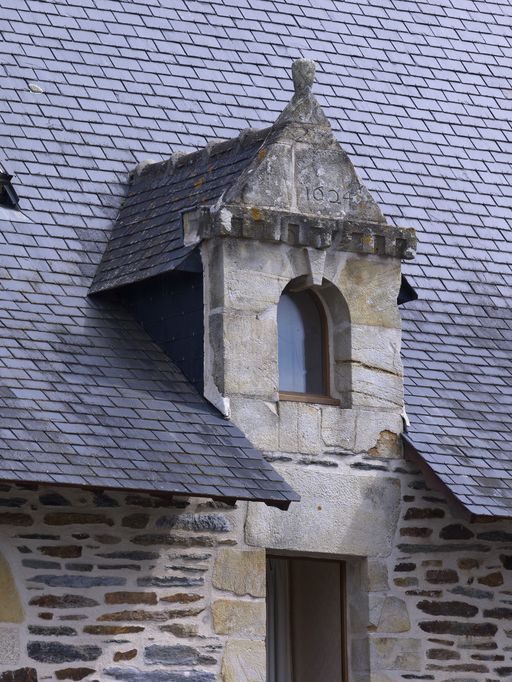 Maison, élévation ouest : la lucarne de gauche portant la date 1624 (état en 2011)Immatriculation