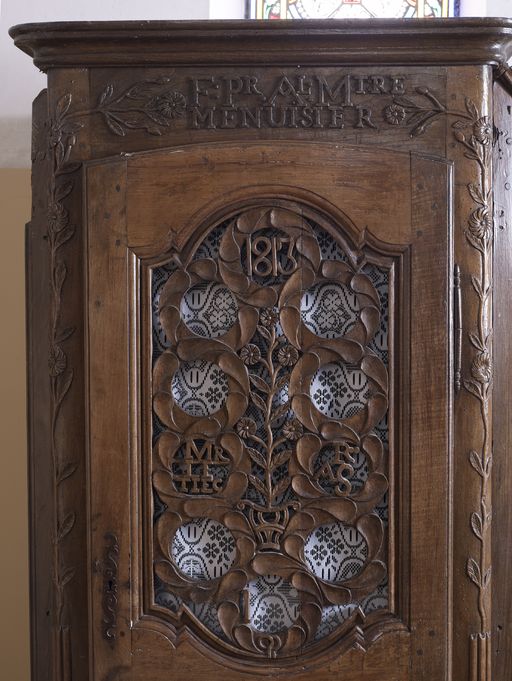 Confessionnal : porte centrale (état en 2011)Immatriculation