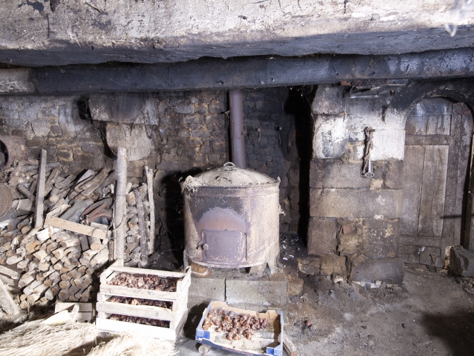 Logis-étable, salle, mur de refend est, cheminée de la salle et porte de communication avec le logis à étageImmatriculation