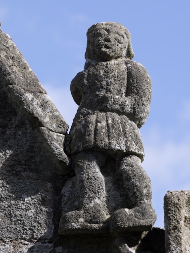 Elévation ouest, détail personnage anciennement porte-blason, à la base du rampant sudImmatriculation