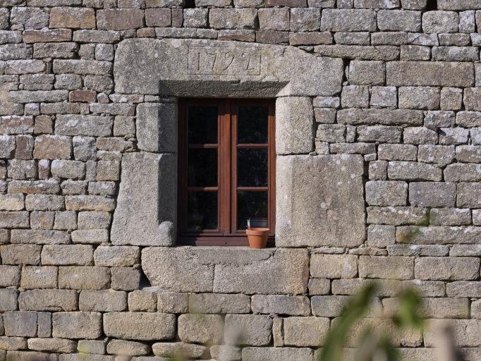 Ferme parcelle 225, datée 1792 et 1826, détail de la fenêtre du 17e siècle redatée 1792Immatriculation