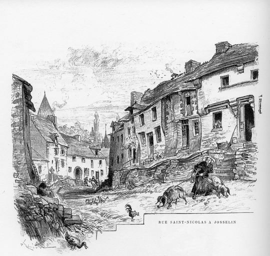 ' Rue Saint-Nicolas à Josselin '. Gravure, 1891Immatriculation