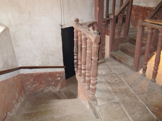 Tour d'escalier, vue prise du palier du 2d étage vers le demi-étageImmatriculation