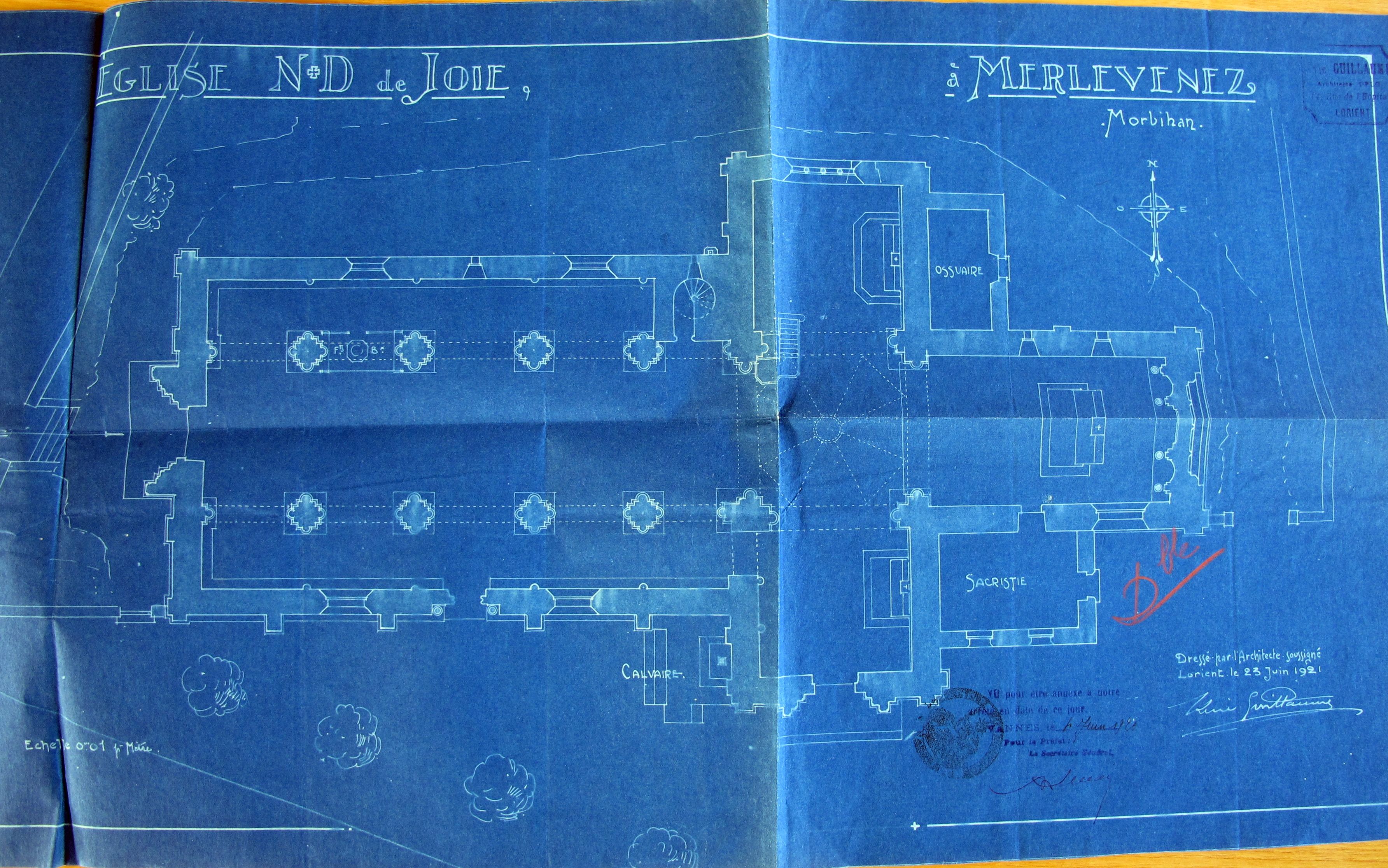 Plan de l'église, par René Guillaume, 21 juin 1921 (AD Morbihan, 2O 130)Immatriculation
