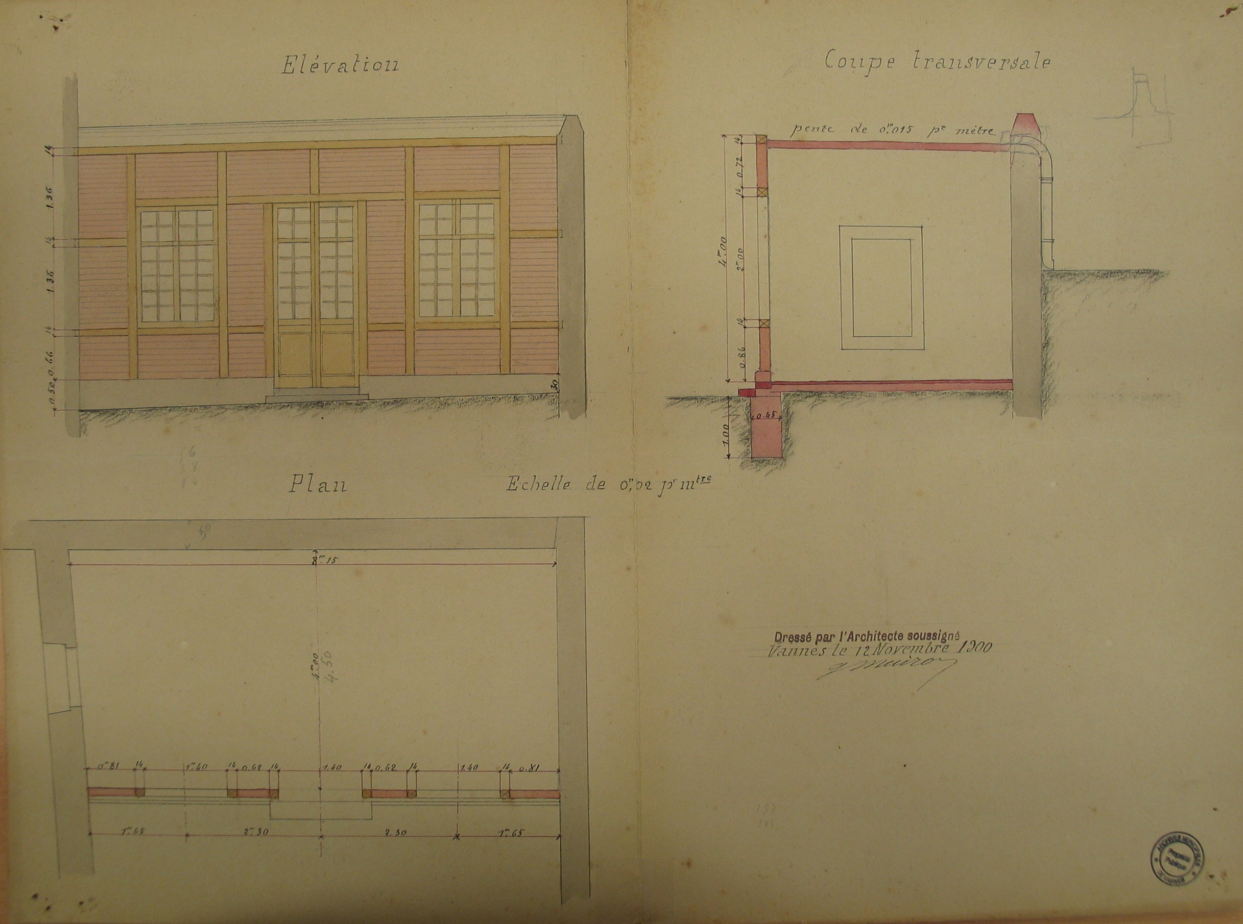 Construction d'une annexe par G. Muiron, 1895. AM Vannes 2M200.Immatriculation