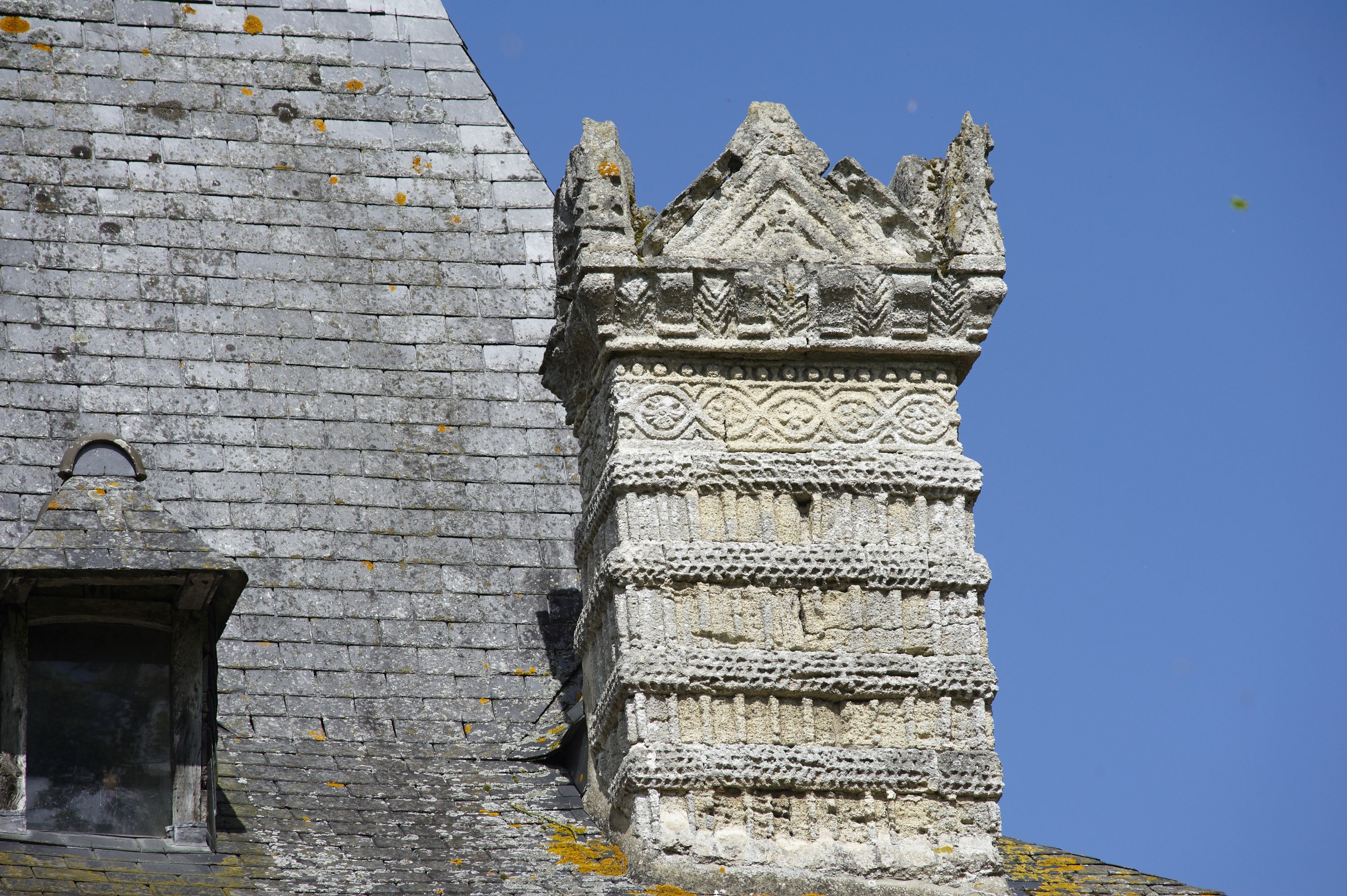 Détail : décor de souche de cheminée, amortissement triangulaire cantonné de pinaclesImmatriculation