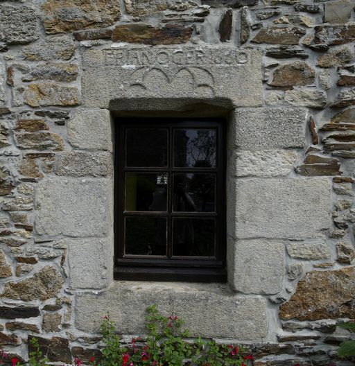 Détail de la fenêtre, linteau portant la date de 1660 et le nom du commanditaire IAN OGERImmatriculation