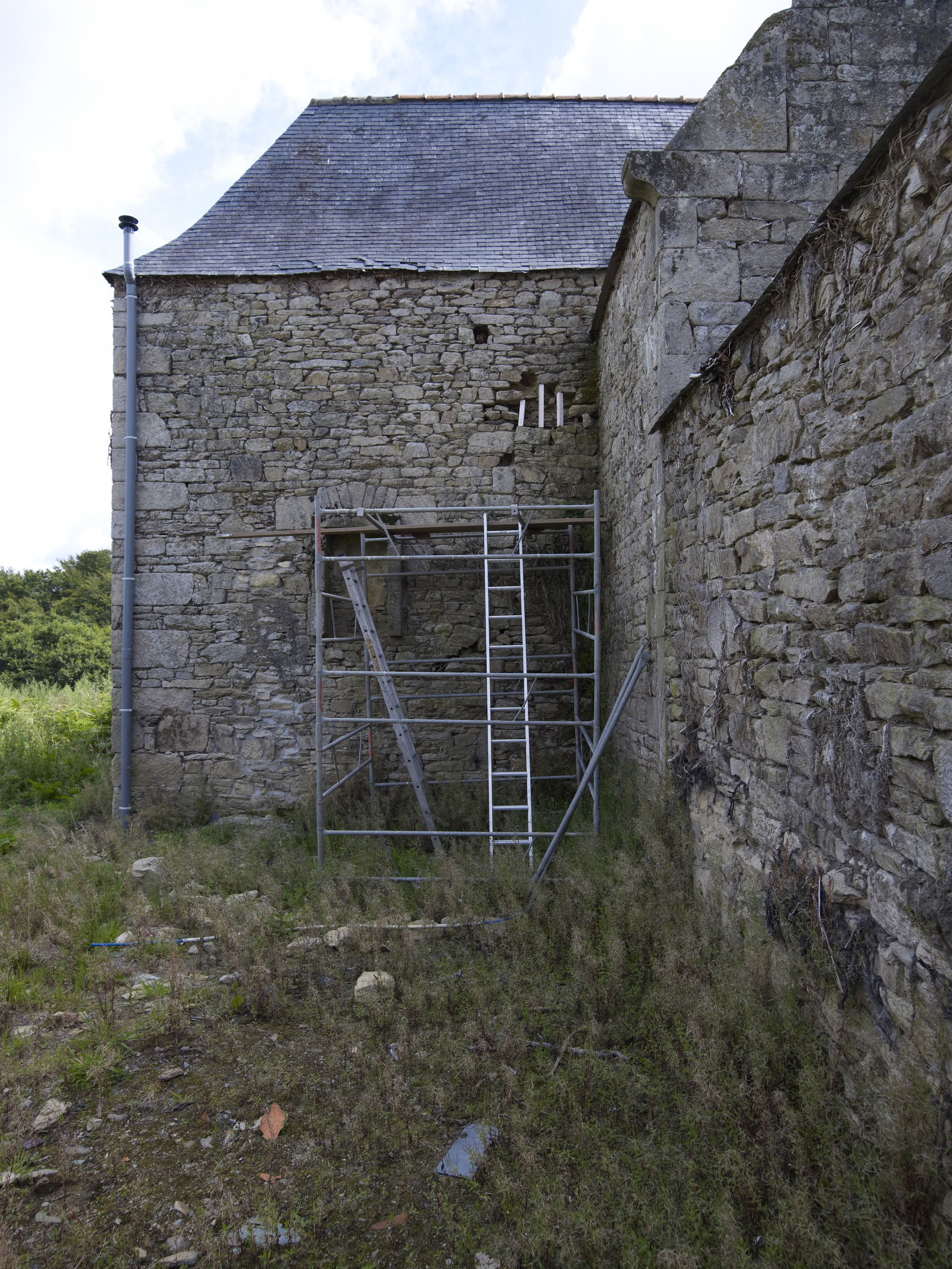 Plougras, Menez Riou : manoir, façade postérieure, tour d'escalierImmatriculation