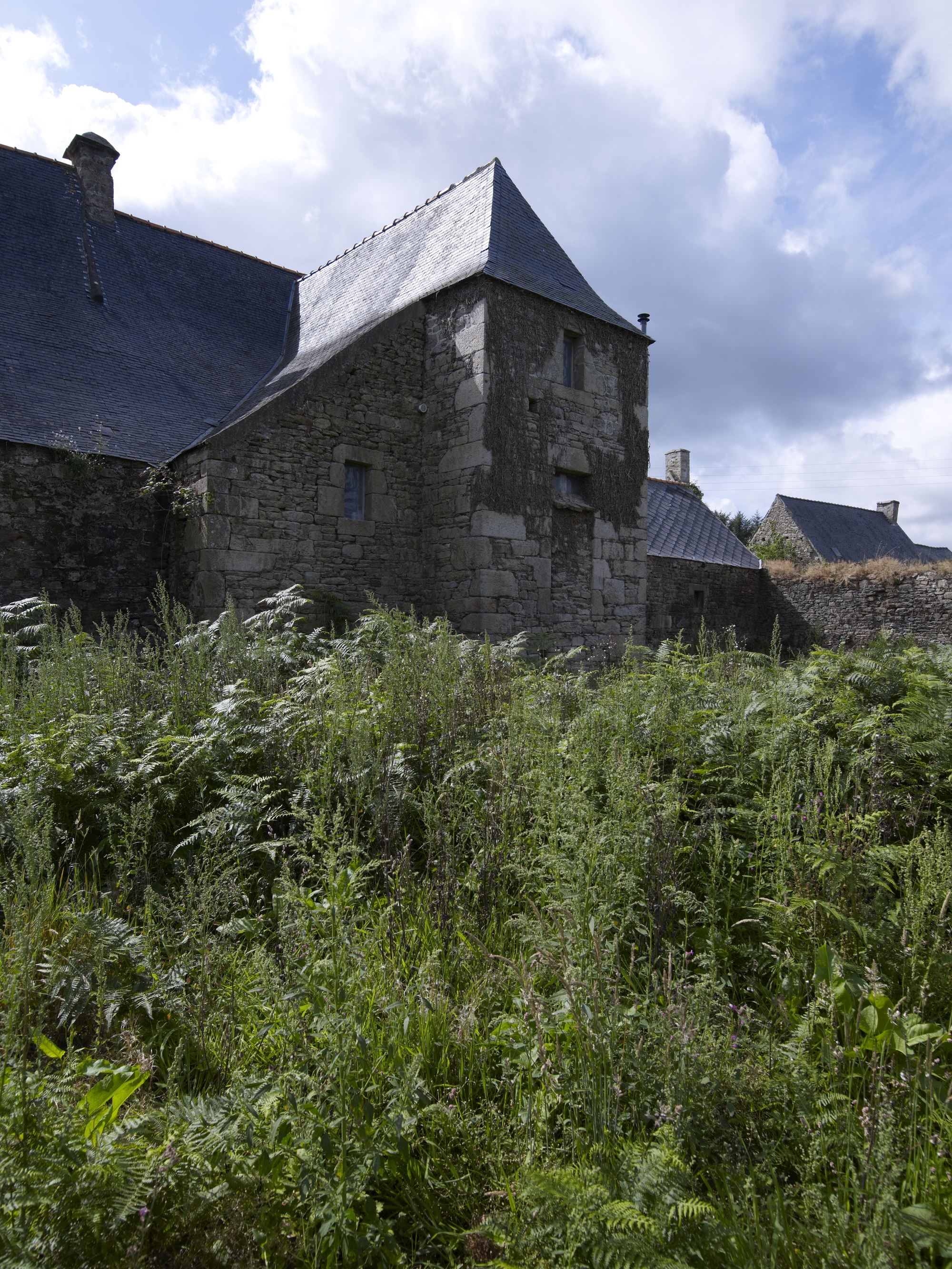 Plougras, Menez Riou : manoir, façade postérieure, tour d'escalierImmatriculation