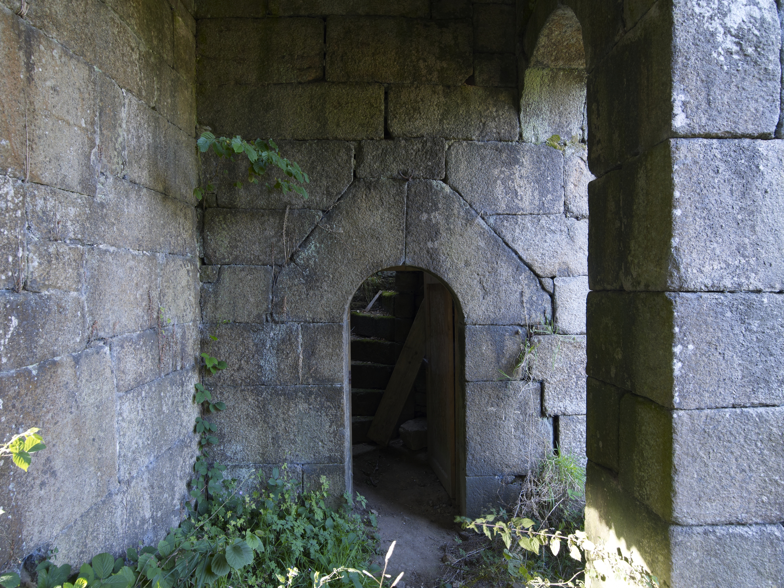 Plouaret, Guernanchanay : portail monumental du manoir, entrée de l'escalier en vis menant à la plate-forme sommitaleImmatriculation