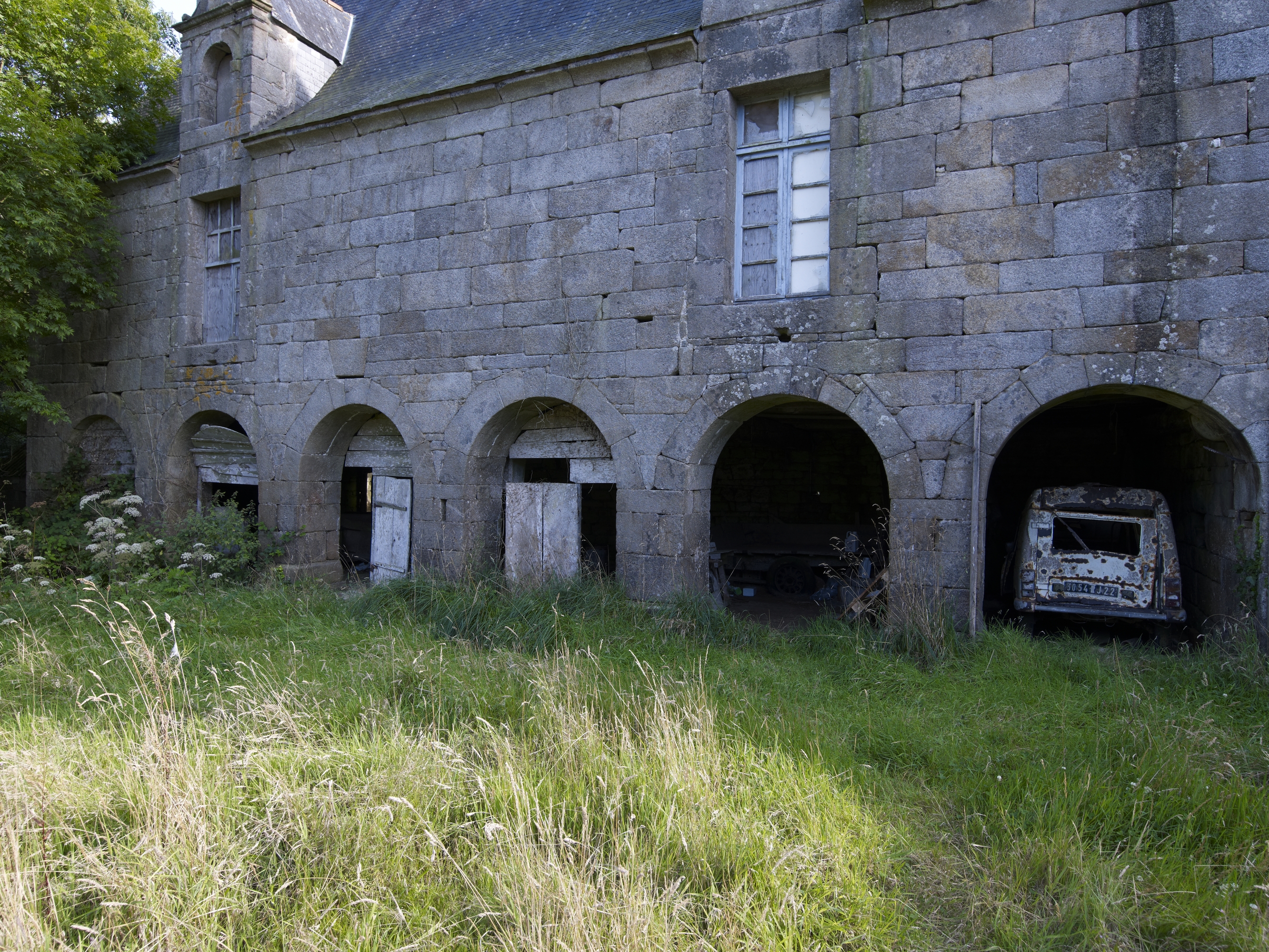 Plouaret, Guernanchanay : manoir et cour intérieure. Elévation nord. La galerie servant de remise comprend six arcades en plein cintreImmatriculation