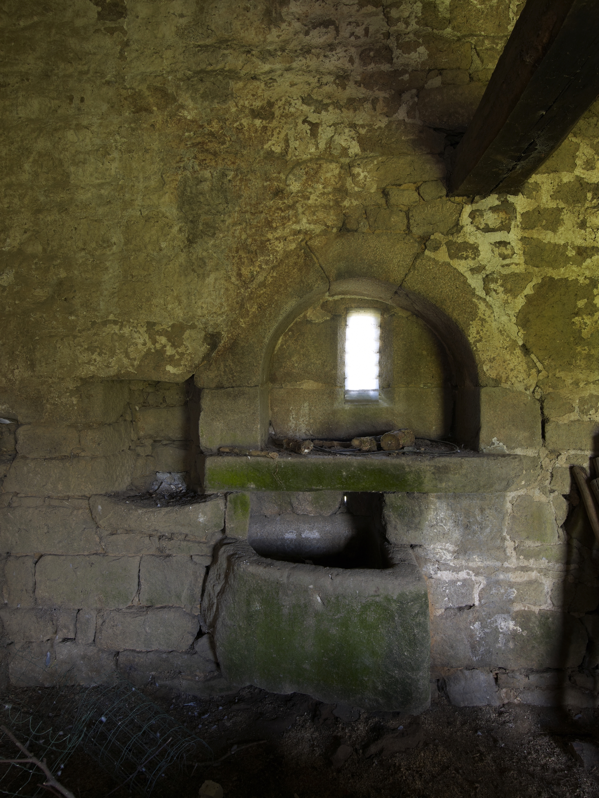 Plouaret, Varveguez : ferme, rez-de-chaussée, saloir mural, pierre à saler, placard mural et évier aménagés dans l'épaisseur du mur nordImmatriculation