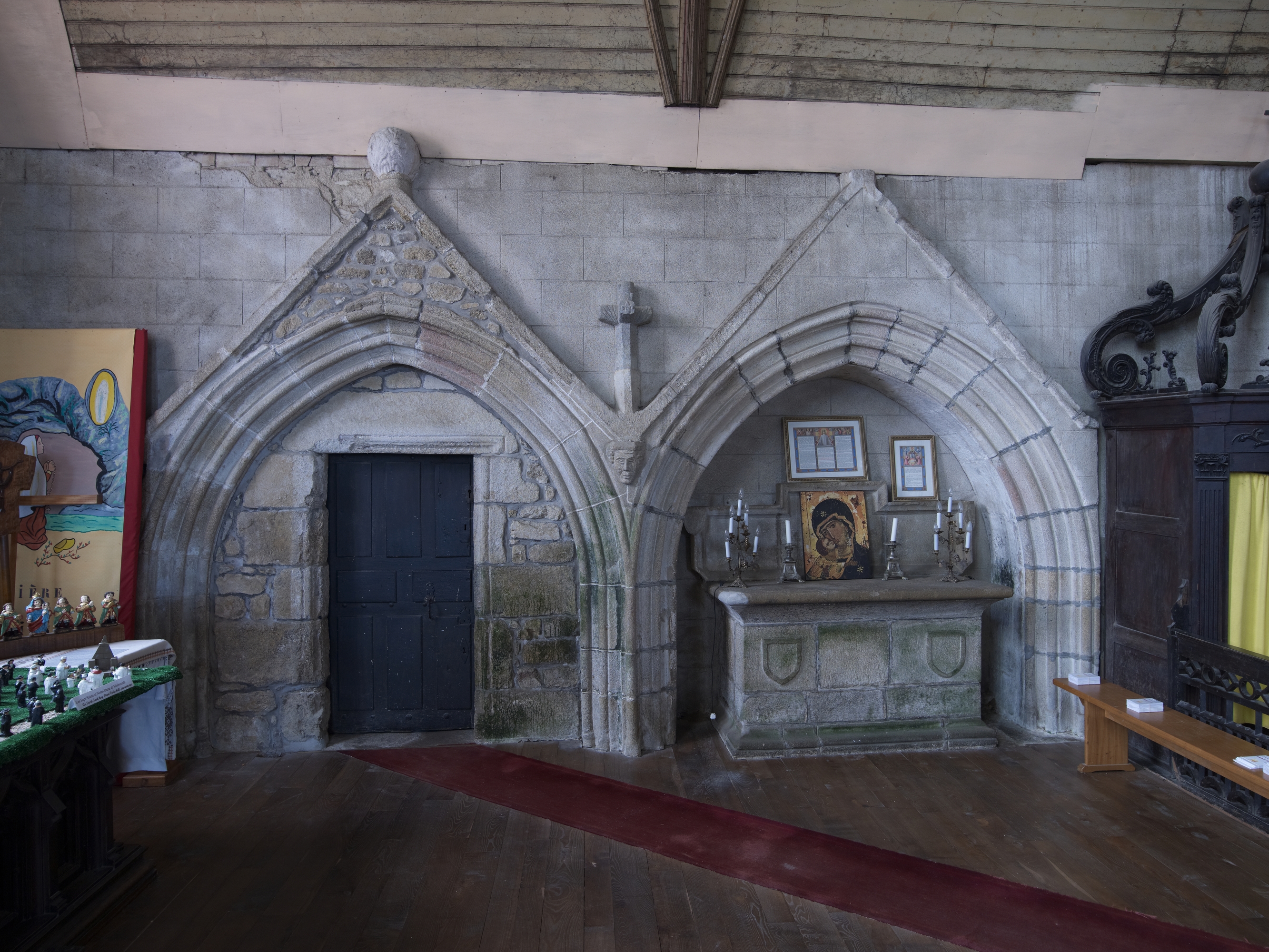 Vue intérieure, anciens enfeux dans les mur du bas-côté sud du choeurImmatriculation