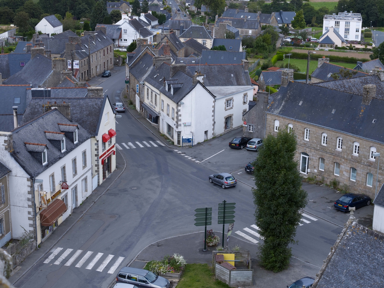 Plouaret : vue depuis le clocher de l'église paroissiale Notre-Dame, vers le nord-estImmatriculation