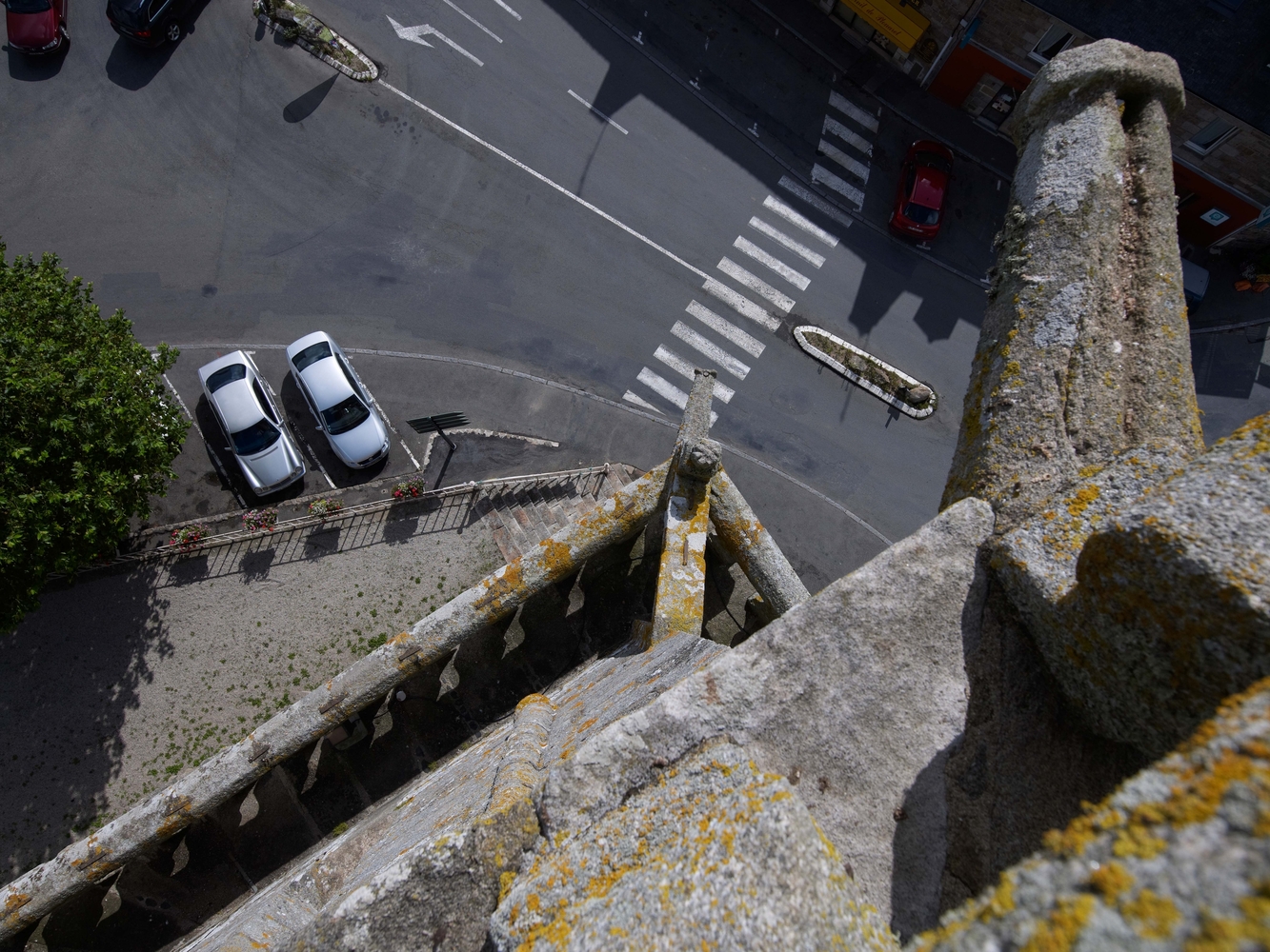 Plouaret : vue depuis le clocher de l'église paroissiale Notre-Dame, vue plongeanteImmatriculation