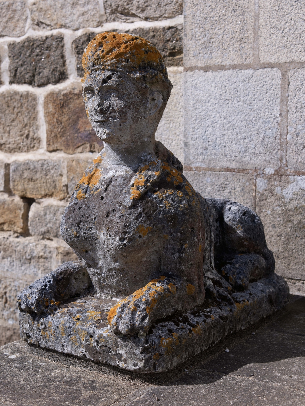 Détail de la statuaire du perron de l'élévation orientée vers le sud-est : sphynx (tête de femme, corps de lion et ailes d'oiseau)Immatriculation