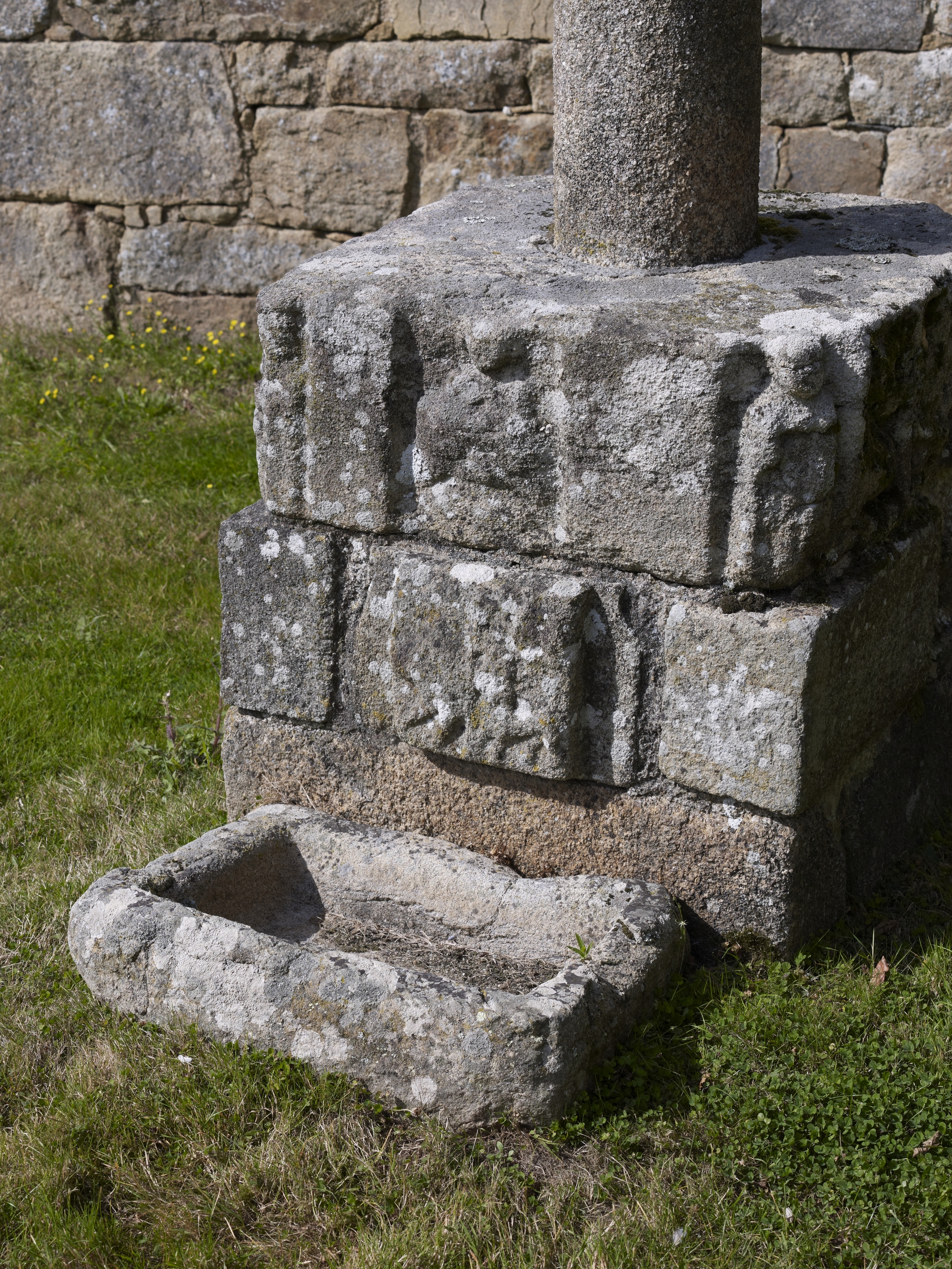 Vue de détail du socle du calvaire : bas-reliefImmatriculation