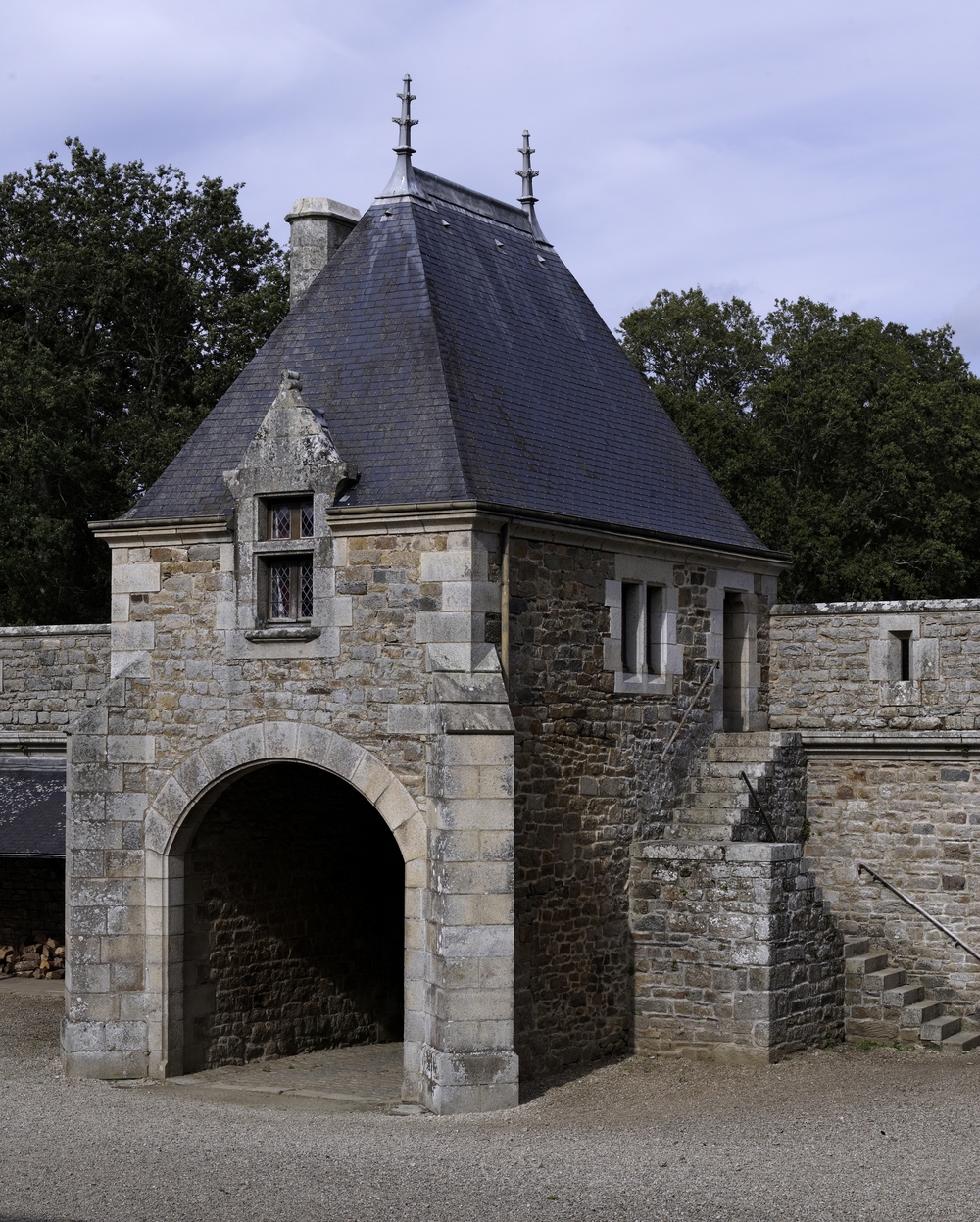 Vue du pavillon abritant la porte charretière (logis-porche)Immatriculation
