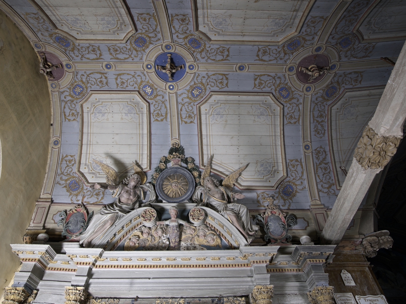 Lanvellec, Saint-Carré : chapelle Notre-Dame-de-Pitié, vue intérieure, décor de la voûte nordImmatriculation