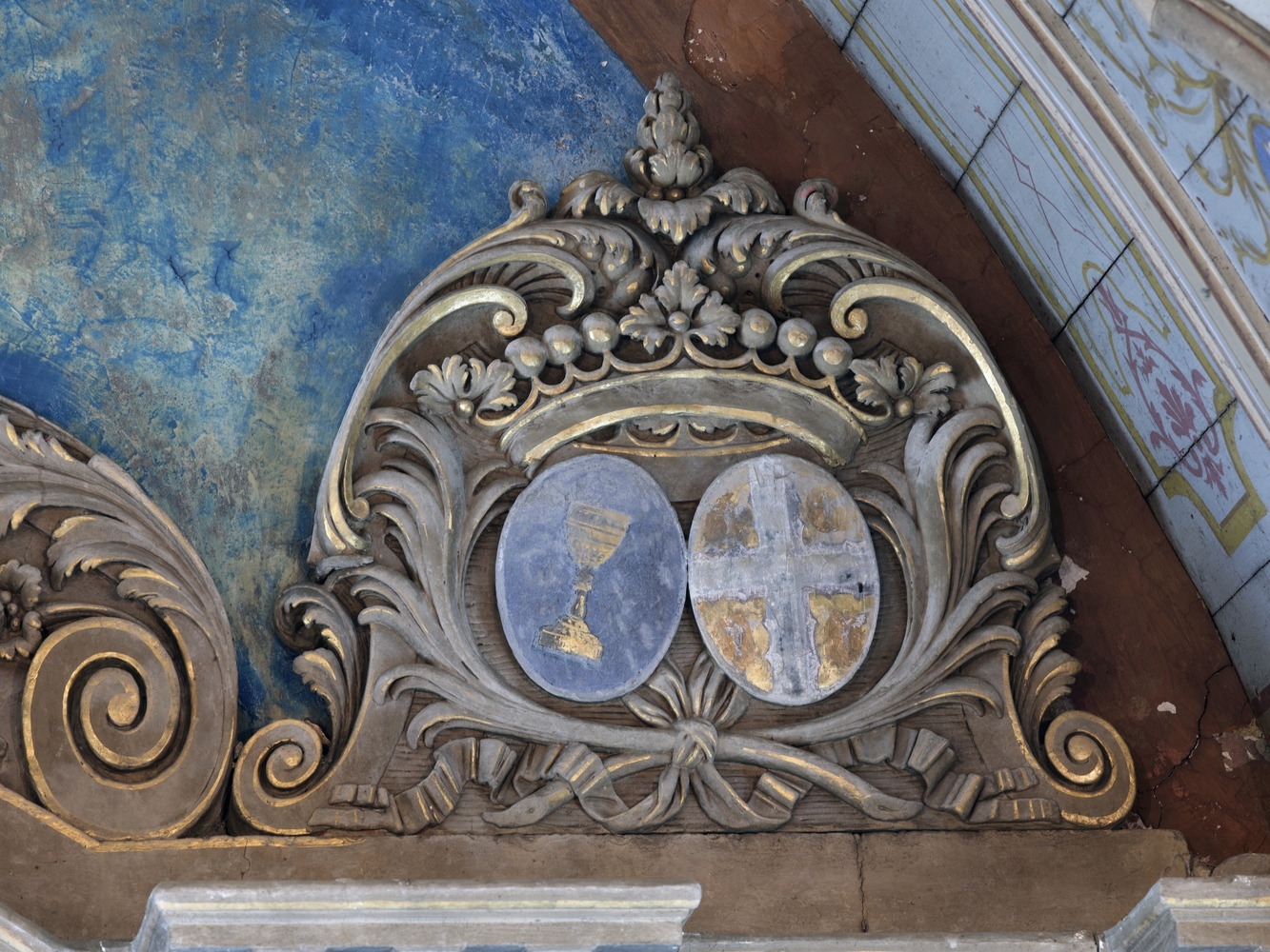Lanvellec, Saint-Carré : chapelle Notre-Dame-de-Pitié, vue intérieure, décor du maître-autelImmatriculation