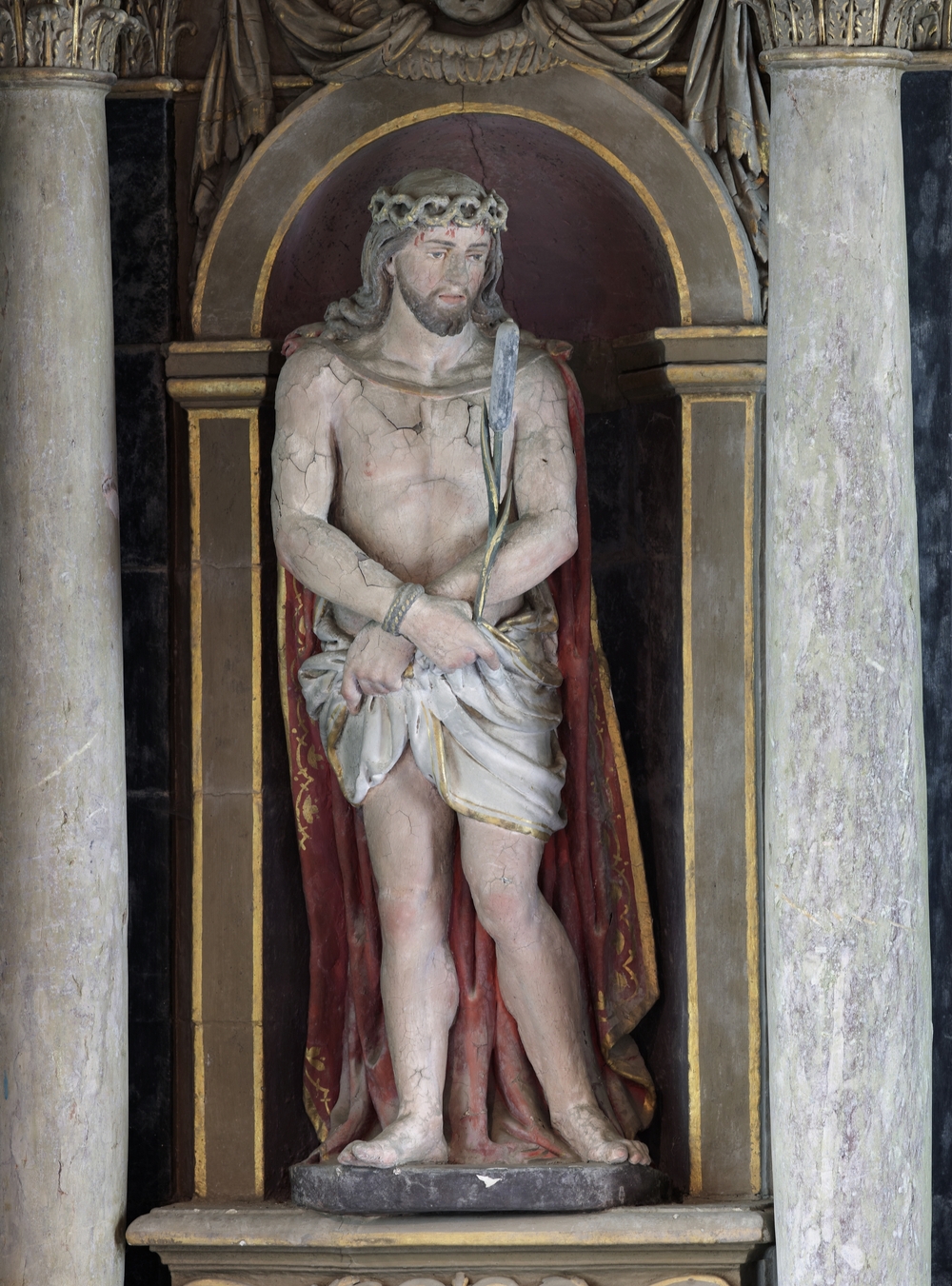 Lanvellec, Saint-Carré : chapelle Notre-Dame-de-Pitié, vue intérieure, statue représentant le Christ aux liensImmatriculation