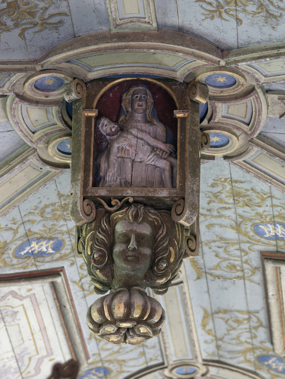 Lanvellec, Saint-Carré : chapelle Notre-Dame-de-Pitié, vue intérieure, décor de la croisée du transeptImmatriculation