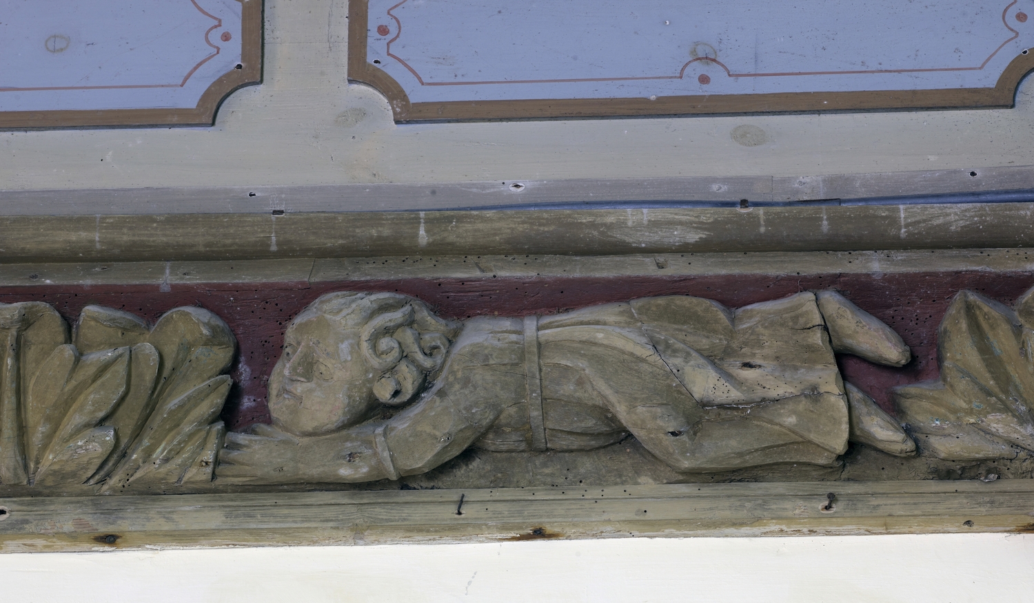 Lanvellec, Saint-Carré : chapelle Notre-Dame-de-Pitié, vue intérieure, décor de la sablière de la nefImmatriculation