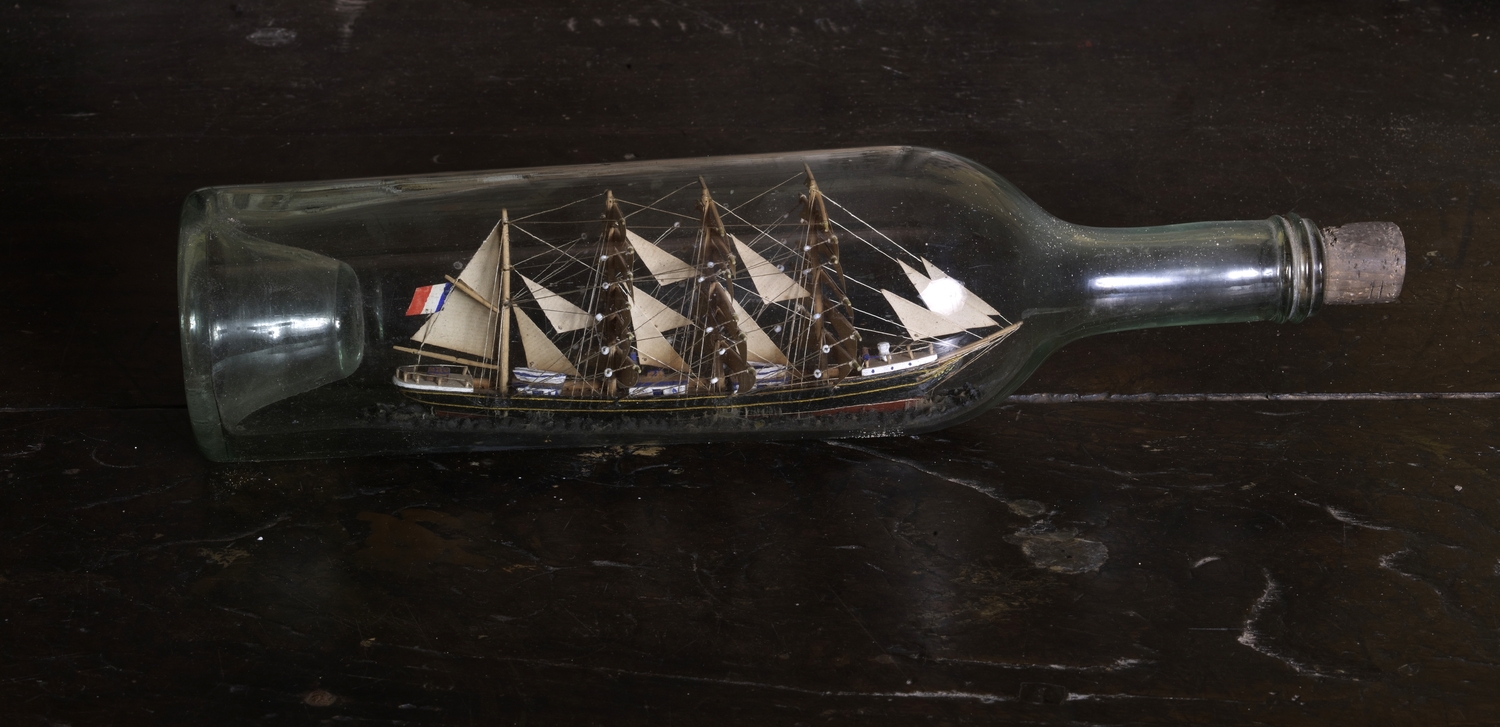 Lanvellec, Saint-Carré : chapelle Notre-Dame-de-Pitié, vue intérieure, bateau en bouteille en ex-votoImmatriculation