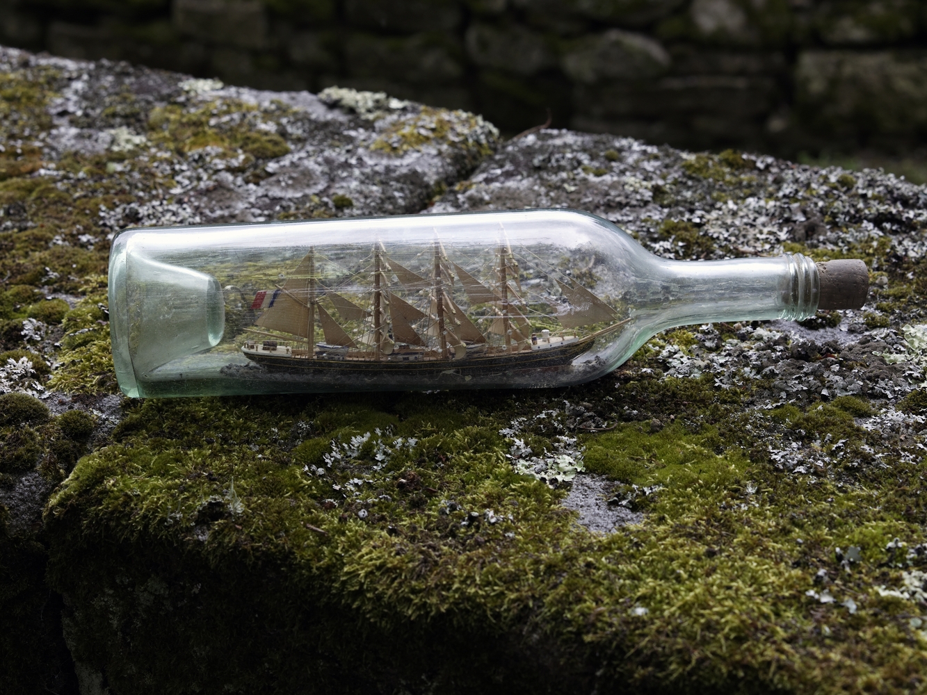 Lanvellec, Saint-Carré : chapelle Notre-Dame-de-Pitié, vue intérieure, bateau en bouteille en ex-votoImmatriculation