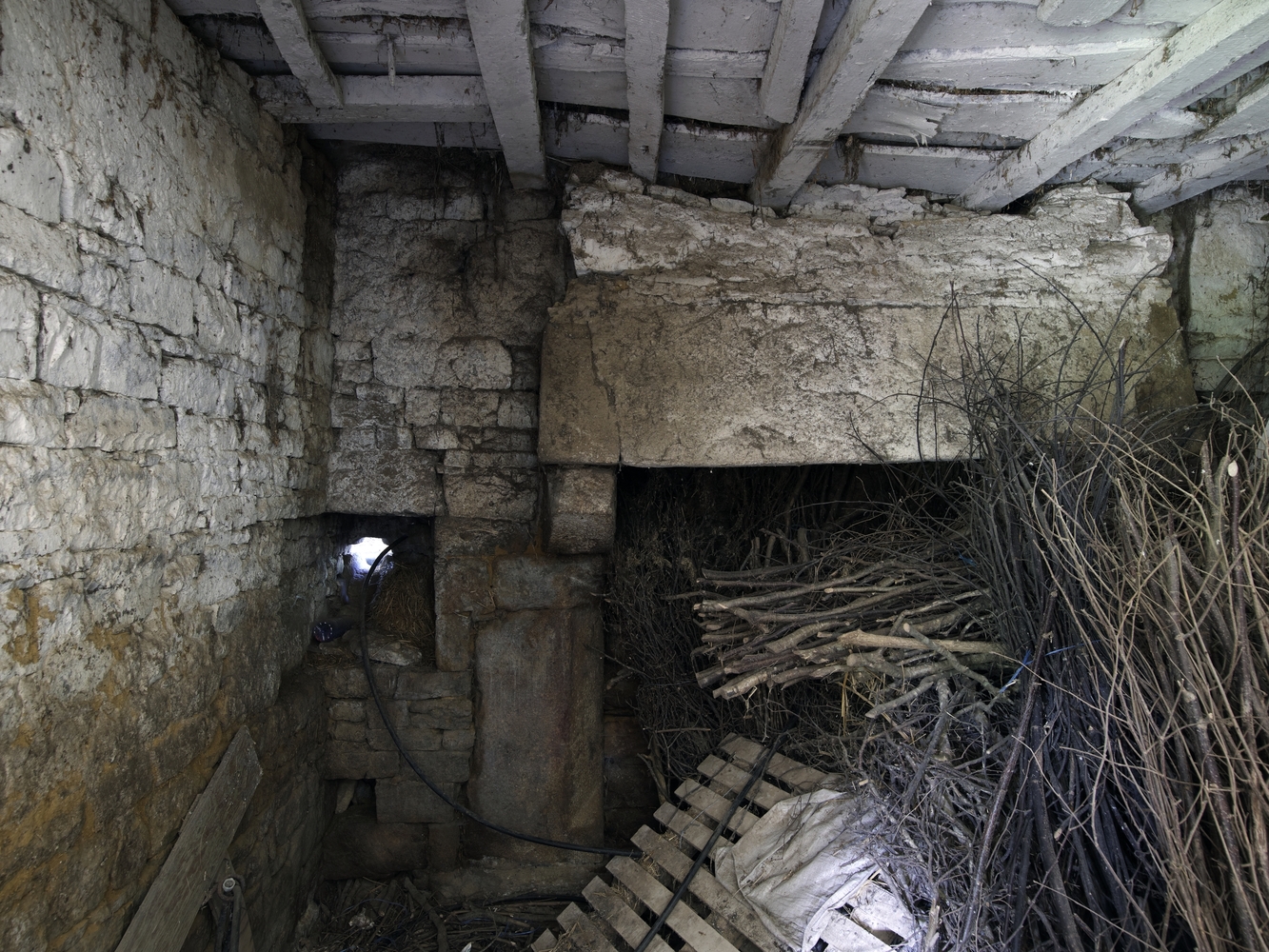 Lanvellec, Goaz Ru : commun (n° 2), vue intérieure, cheminée. A gauche, il s'agit d'une ancienne ouverture de tir flanquant l'entrée monumentale et permettant sa défense rapprochéeImmatriculation