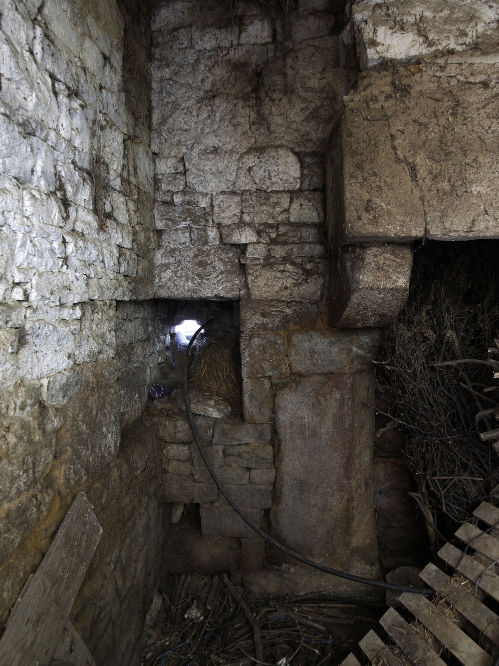 Lanvellec, Goaz Ru : commun (n° 2), vue intérieure, cheminée. A gauche, il s'agit d'une ancienne ouverture de tir flanquant l'entrée monumentale et permettant sa défense rapprochéeImmatriculation