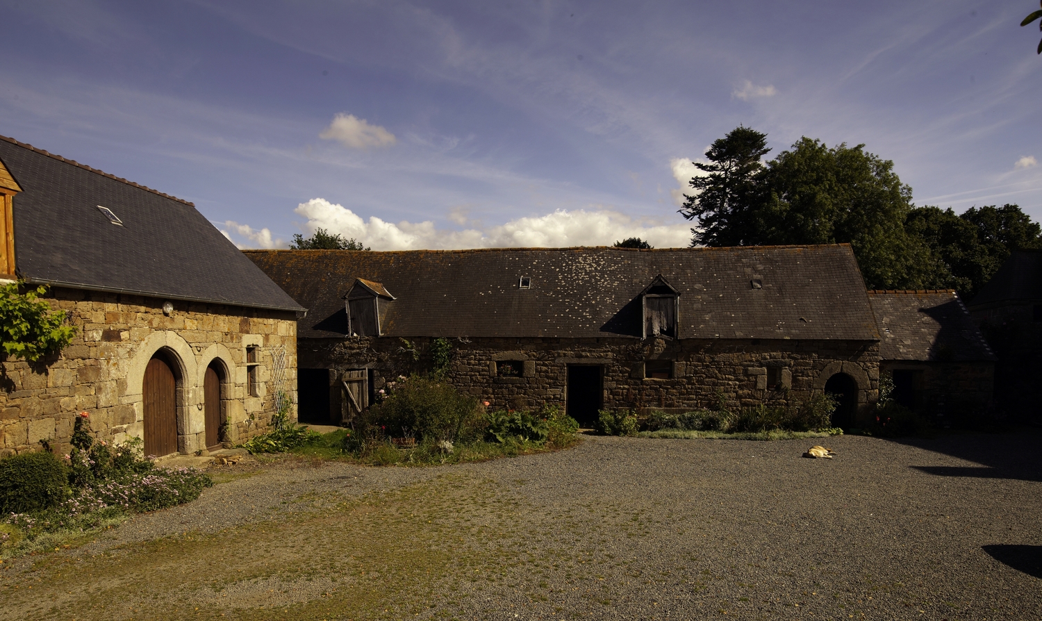 Lanvellec, Goaz Ru : commun (n° 2), partie centrale à usage d'étable et vraisemblable logis. Le pignon sud est accosté d'une petite remise. A gauche : commun (n° 1), façade antérieureImmatriculation