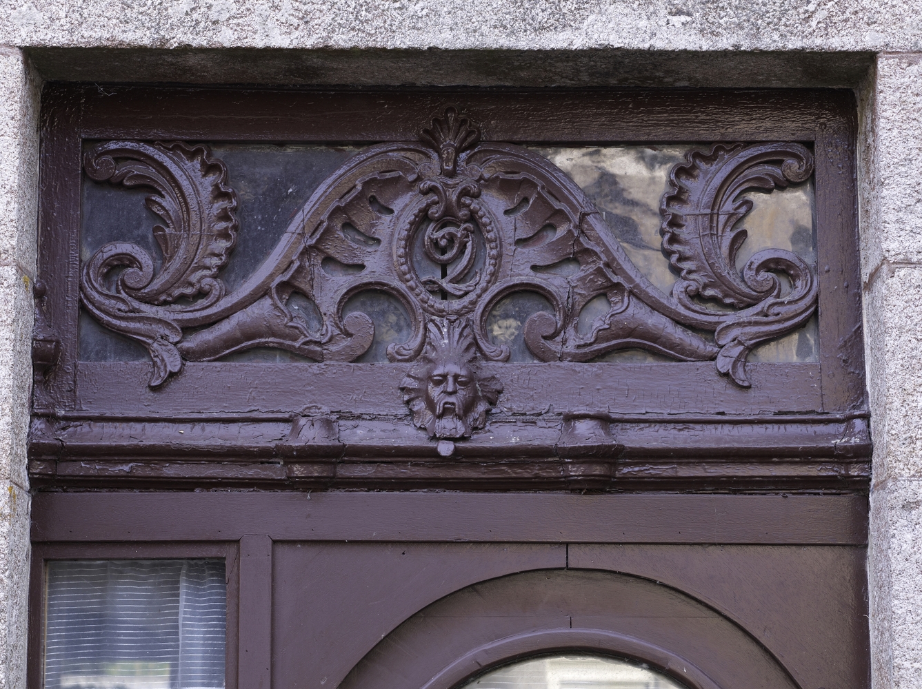 Lanvellec, le bourg, place de l'église : détail de l'imposte d'une porteImmatriculation