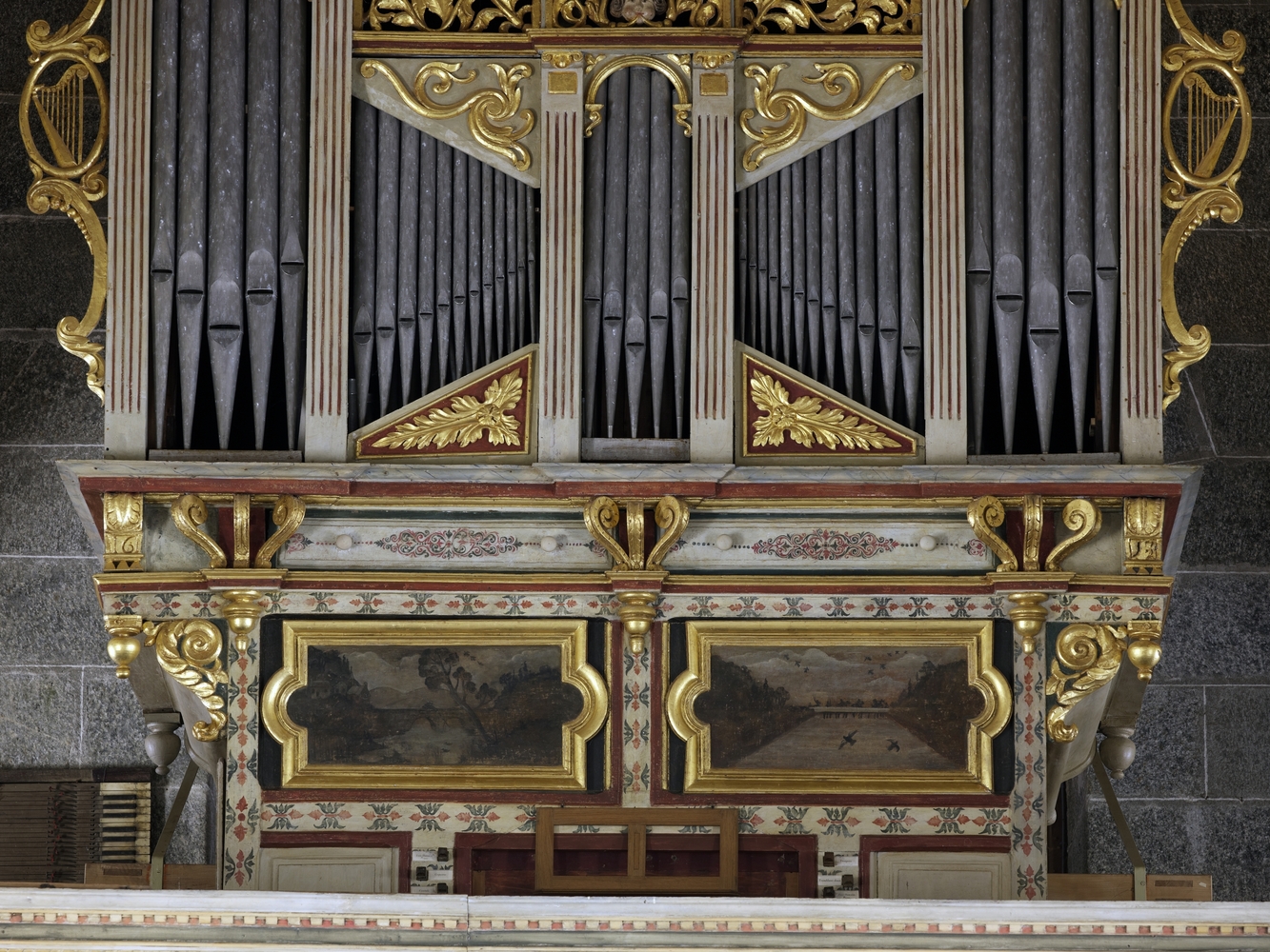 Vue intérieure, détail de l'orgue de Robert DallamImmatriculation
