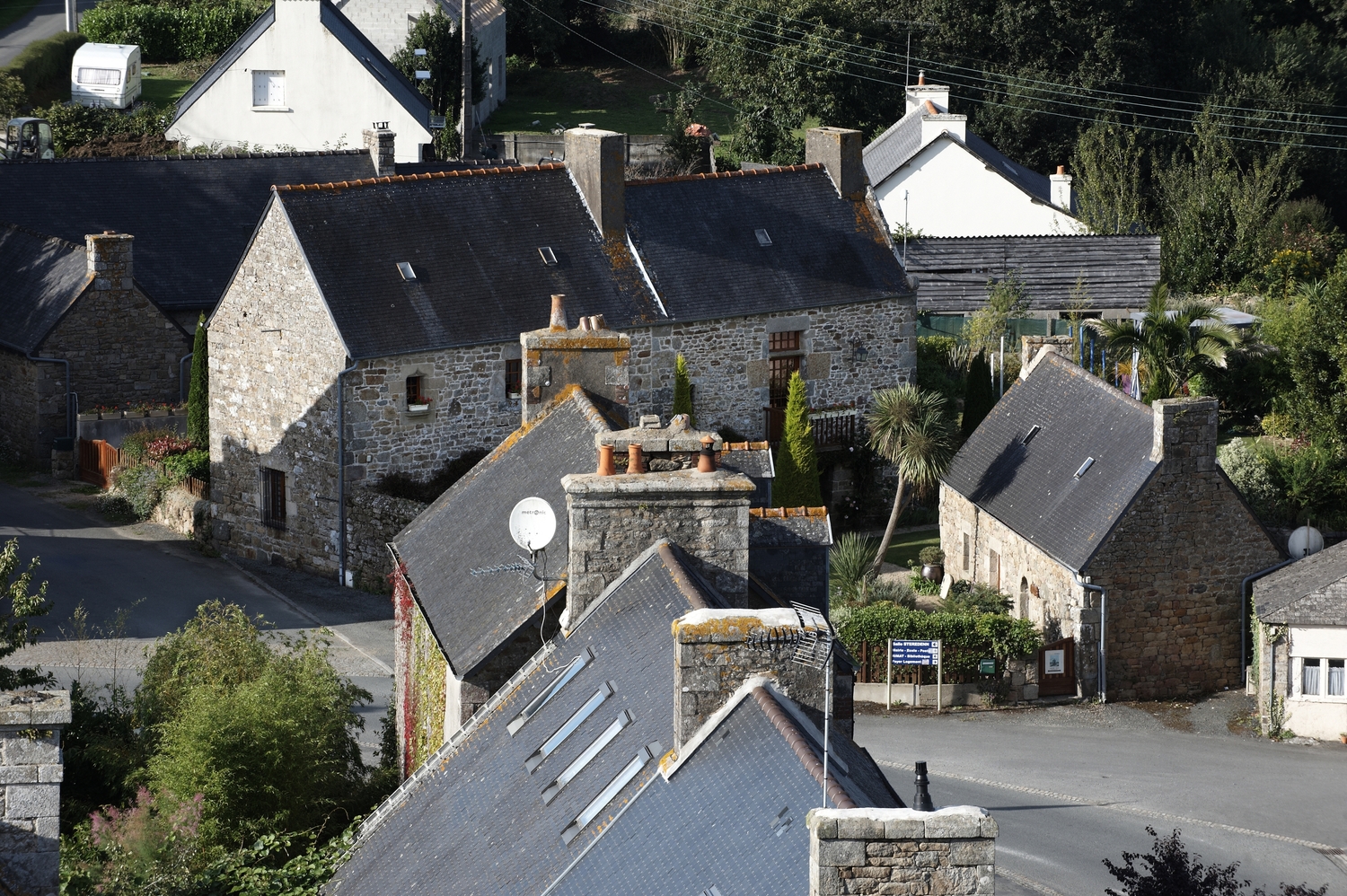 Lanvellec : vue de l'ancien manoir du bourg depuis le clocher de l'église paroissiale Saint-Brandan (Brendan)Immatriculation